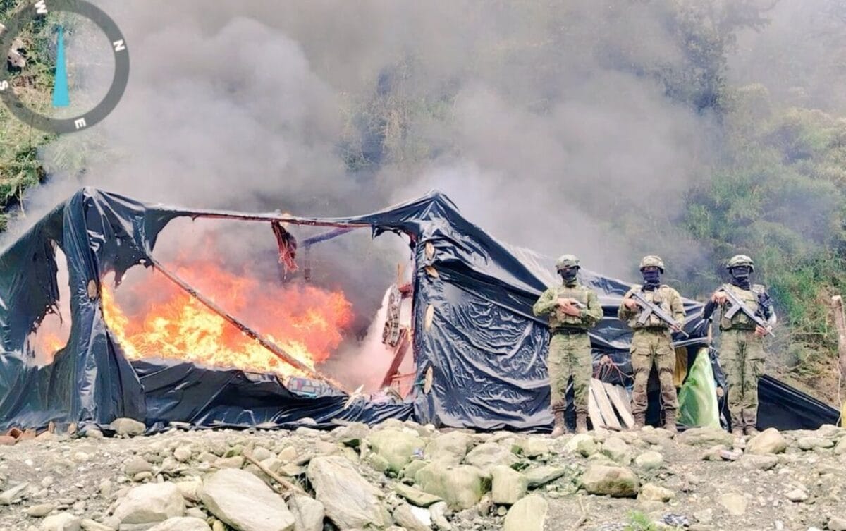 El Ejército Ecuatoriano ejecutó una nueva operación contra la minería ilegal en el sector de Chigüinda, cantón Gualaquiza, provincia de Morona Santiago, tras labores de inteligencia que permitieron ubicar actividades ilícitas en la zona. Durante el operativo se destruyeron tres campamentos utilizados por grupos dedicados a la extracción ilegal.