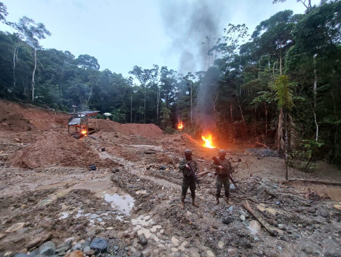 Intervención militar en Napo inhabilita maquinaria empleada para minería ilegal