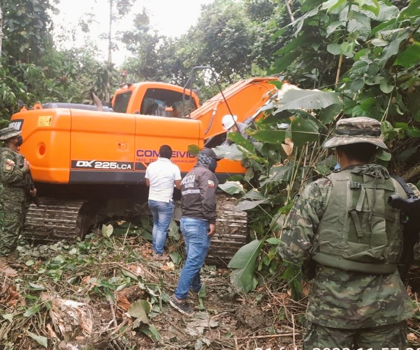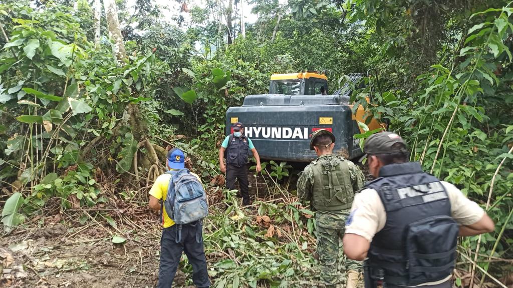 En la parroquia Zumbi, provincia de Zamora Chinchipe, se identificó un nuevo frente de minería ilegal, tras un operativo de control en la zona.