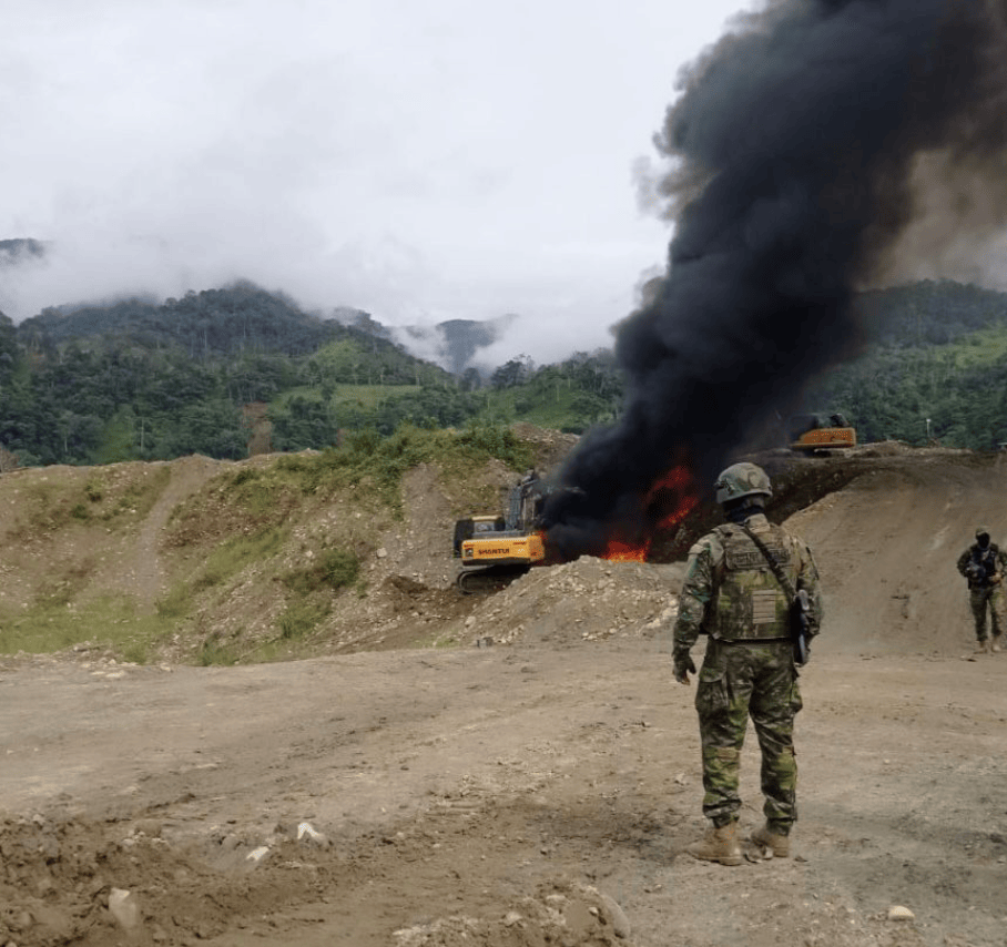 Durante el operativo se logró inhabilitar maquinaria utilizada para la extracción ilícita de minerales, debilitando directamente la estructura logística de estas operaciones ilegales que afectan al medio ambiente y a los recursos naturales del país.